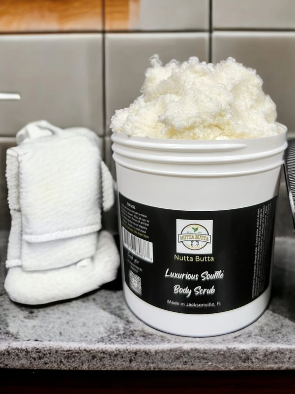 Indulge in the ultimate pampering experience with our Nutta Butta Luxurious Soufflé Body Scrub. This exquisite butter sugar scrub transforms your shower into a spa-like retreat. We've crafted it with a decadent blend of 5 all-natural premium body butters and 24 skin-loving oils, perfectly combined with natural sugar and infused with your favorite Nutta Butta scents. Prepare for the most luxurious exfoliation you've ever experienced, leaving your skin feeling incredibly soft, smooth, and deeply nourished.